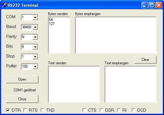 und schalten Sie DTR ein. Damit ist die Betriebsspannung vorhanden.