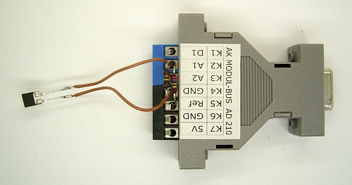Die Aufgabe war: Messung der Luftfeuchte in einem Computerraum. Bei hoher Luftfeuchte könnte Wasser kondensieren und die empfindliche Elektronik zerstören. Es gibt kapazitive Feuchtesensoren, die jedoch eine komplizierte Auswerte-Schaltung benötigen und relativ aufwendig kalibriert werden müssen. Der Betauungssensor SHS-A4 von Hygrosens arbeitet dagegen resistiv und braucht nur einen einfachen Spannungsteiler.