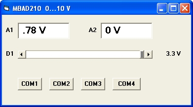 Da der AD-Wandler nur bei einem kleinen Teil der Endspannung arbeitet kommt es auf gute Störsicherheit an. Es hat sich gezeigt, dass der interne PWM-Ausgang Störsignale einstreuen kann, die sich in gelegentlichen Spikes äußern. Dieser Effekt wird vermieden, wenn der PWM-Ausgang auf den höchsten Wert eingestellt wird. Die PWM-Ausgabe 255 wird auch im folgenden Programm eingesetzt. Am Ausgang liegen dann konstant bei 3,3 V.