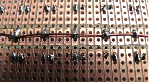 eine Fertigplatine mit Leiterbahnen verwendet. Leiterbahnen wurden dazu