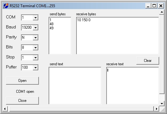 werden Messwerte in Form einzelner Bytes im Takt von 1000 ms empfangen.