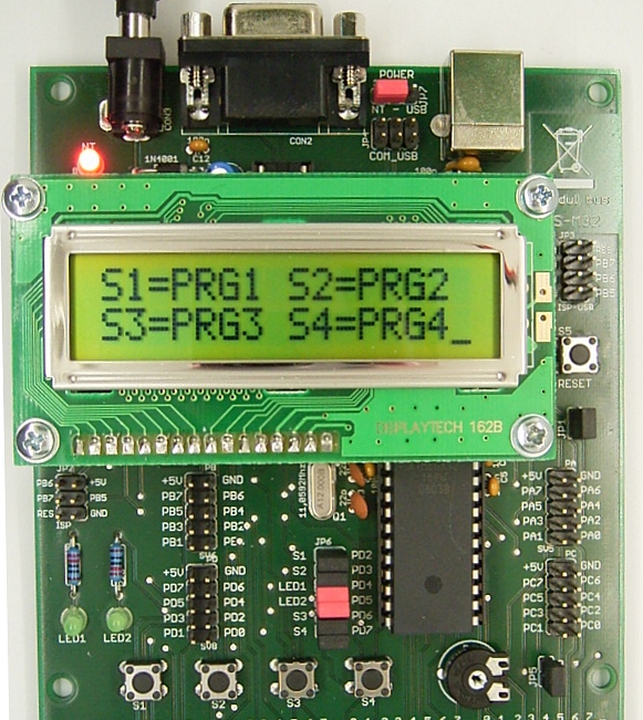 Display eine Einschaltmeldung und dann ein kleines Bedien-Menü für vier
