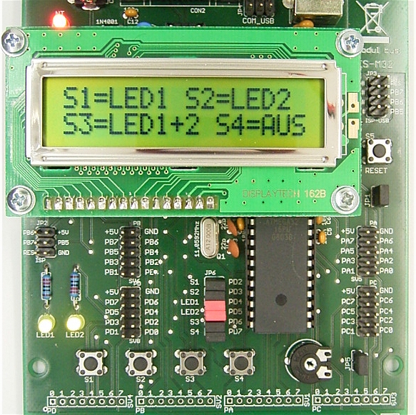weil sie die vier Taster und zwei LEDs mit den Ports des Prozessors