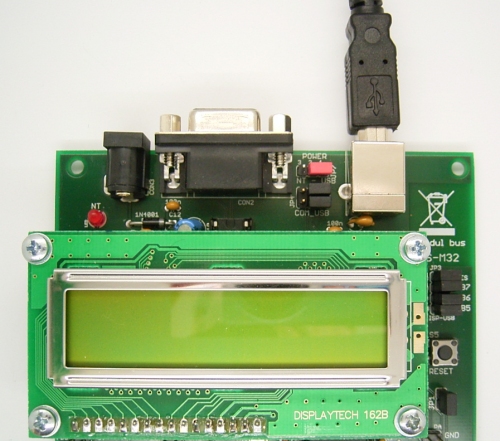 USB angeschlossen. Außerdem sind die vier ISP-Leitungen an JP3 verbunden.