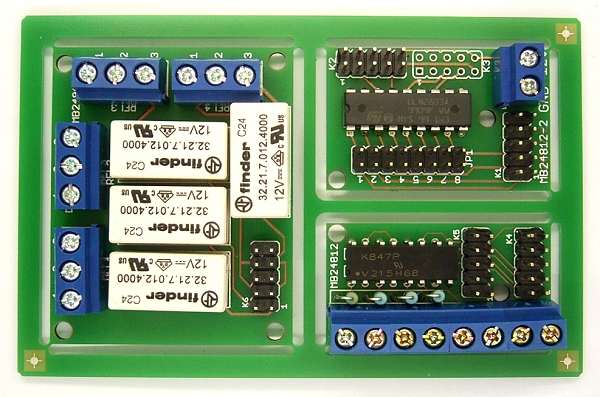 - Relais-Platine mit vier Relais mit Umschaltkontakten zum Anschluss an die Treiberplatine