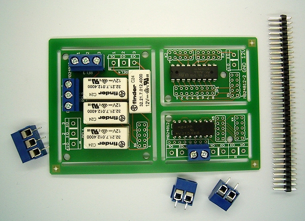 - Treiberplatine mit ULN2803 und acht Ausgängen mit offenem Kollektor für bis zu 24 V und 500 mA