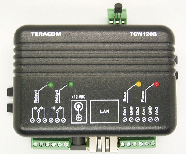 Das TCW120B (erhältlich bei Abacom) ist ein über Netzwerk steuerbareres Mess- und Steuersystem.