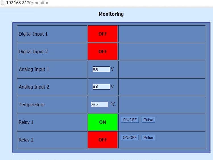 angezeigt. Sie können die Relais von hier aus manuell schalten. Dazu
