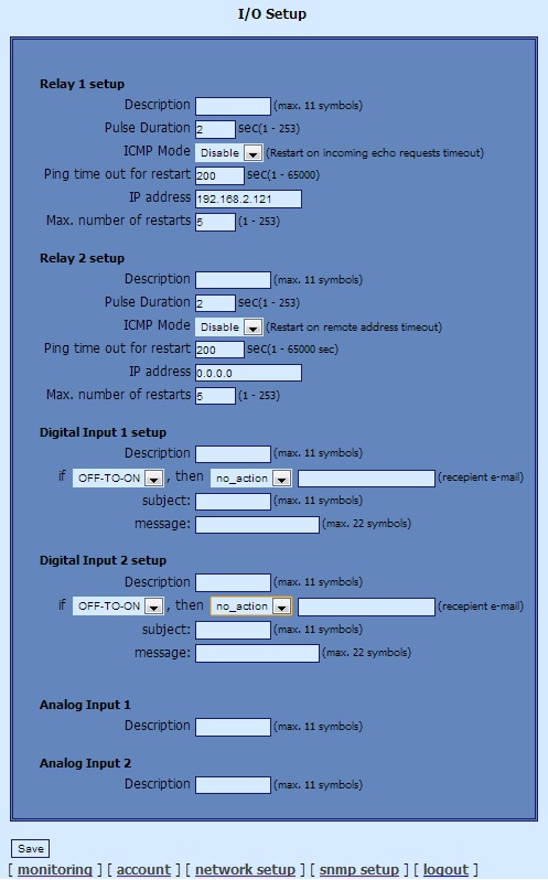 analogen oder digitalen Eingange, des Temperatursensors und der Relais