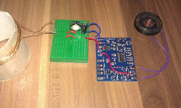 Ein 555 Metalldetektor auf Basis der "Fingerpfeife". Für den Versuch