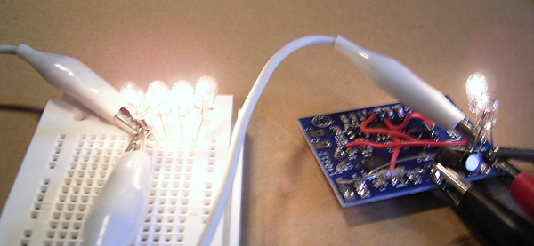 Belastung erhöht werden. Auf der Platine war noch der 555 als Blinker