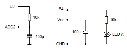 gleicher Weise in einem Spannungsteiler verwendet. Der Eingang B4 (ADC)