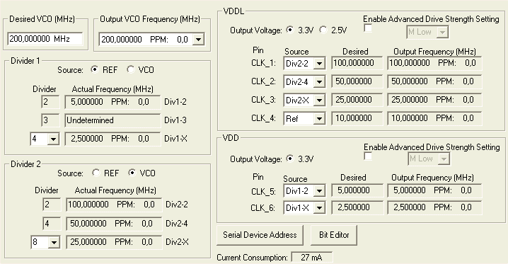 der Basis des CY27EE16 kann bis zu 6 Ausgangssignale gleichzeitig erzeugen