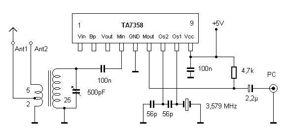 enthält der TA7358 noch einen HF-Vorverstärker in Basisschaltung,