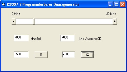 Programm ICS307-2b. Der Schieberegler stellt kleine Schritte von 1 kHz