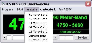 Das Programm erlaubt die Auswahl der Kurzwellenbänder.