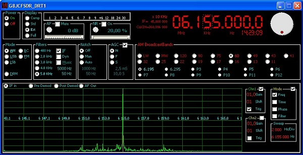 Peter Carnegie (G8JCF) entwickelte diese Software in zwei Versionen für den DRT1 und für den Elektor-DRM-Empfänger, die auf seiner Homepage www.g8jcf.dyndns.org/ zum freien Download bereitstehen. Danke, Peter!