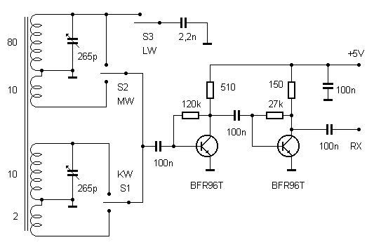 trägt zwei Schwingkreise für Kurz- und Mittelwelle.