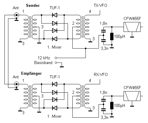 Mischer. Das 12-kHz-Basisbandsignal vom Ausgang der Soundkarte wird direkt