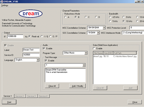 auch senden. Dazu muss man das Programm mit dem Parameter -t aufrufen (Dream_v106.exe