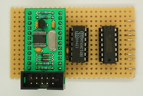 mit vierfacher Frequenz verwendet. Ein doppeltes D-Flipflop 74HC74 teilt