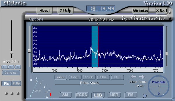 Ein Test mit dem SDRadio zeigte eine gute Abstimmbarkeit auch in den