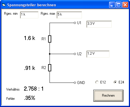 um ein Ergebnis zu finden. Die Teilwiderstände, das Teilerverhältnis