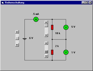 Reihenschaltung (reihe.zip, 3 kB, VBRUN300 erforderlich) VB.Net-Version mit Quelltext: fkainka.de/vbnet/Reihenschaltung.html