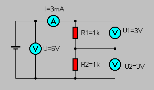 Bei gleichen Widerständen teilt sich die Spannung in gleiche Teile