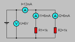 den selben Gesamtstrom von 12 mA zu erreichen. Zwei gleiche Widerstände