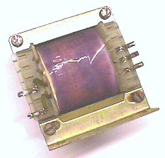 Ein Transformator enthält zwei Dahtspulen auf einem gemeinsamen Eisenkern.