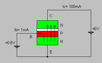 die vom Emitter ausgehen, gelangen zum Basisanschluss. Umgekehrt ist also