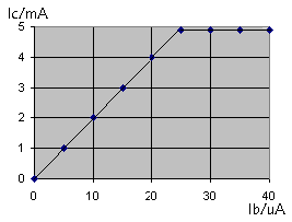 Basisstrom. Beim Sättigungstrom 4,9 mA geht die Kurve in eine horizontale