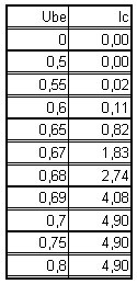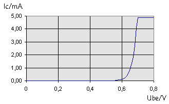 Knick bei ca.. Ube=0,5V und ein steiler Anstieg über Ube=0,6V. |