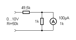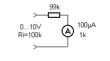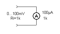 bei 100 µA. Der Innenwiderstand beträgt z.B. 1000 Ohm. Ohne