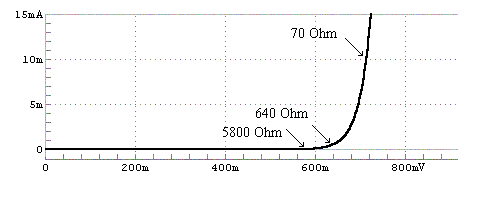 Gleichstromwiderstand einer Si-Diode bei verschiedenen Messströmen