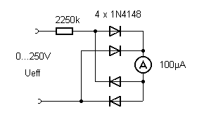 250 V ist der Fehler durch den Gleichrichter tolerierbar. Hier eine typische