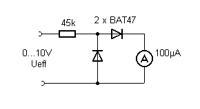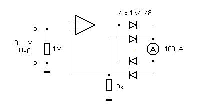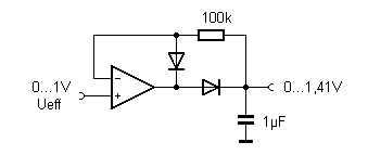 Bei einer Sinusspannung am Eingang mit Ueff = 1 V erscheint also eine Gleichspannung