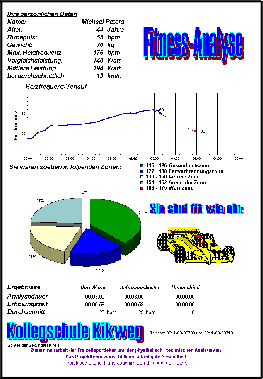 Während zwei Wochenenden präsentierten die beiden Schülergruppen das Ergebnis in der Sportabteilung eines großen Düsseldorfer Kaufhauses. Neben weiteren kleineren Präsentationen wird im Herbst ein Stand auf der Messe "aktiv leben" aufgebaut. Die sportmedizinische Auswertung gibt dabei den Trainingszustand von Probanden an, die in einer zwei- bis fünfminütigen Messung erfaßt werden.
