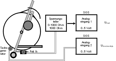 Das verwendete Trainingsgerät ist ein feststehendes Fahrrad mit einstellbarer Radbremse und zwei Meßgeräten. Alle Meßgrößen dieses Rades werden mechanisch zur Anzeige gebracht. Die Geschwindigkeitsanzeige verwendet einen klassischen mechanischen Tachometer ohne elektrische Signale.