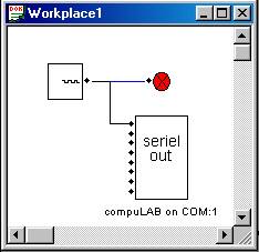 Als Erweiterung soll der Ausgang des Taktgenerators einem Interface zugeleitet werden. Dazu wählt man von der Interface-Karte seriel out aus, zieht die Komponente auf den Arbeitsplatz und konfiguriert die Hardware mittels rechter Maustaste: CompuLAB an Com1 zeigt diese Abbildung:
