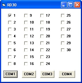 Das folgende Beispielprogramm in Visual Basic zeigt laufend den Zustand aller 30 Eingänge. Rd30vb.zip (41 KB)