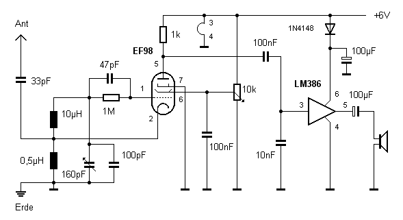 Einfache Radioschaltungen mit der EF98 arbeiten dank des NF-Verstärkers