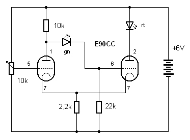 Spannungsteiler zwischen den Trioden durch eine grüne LED zu ersetzten, eine