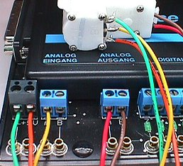 PROGRAMM A-Ausgang = 125 B-Ausgang = 125 Wiederhole Zahl = A-Eingang Wenn Zahl < 80 Dann Zahl = 80 Sonst EndeWenn Wenn Zahl > 120 Dann Zahl = 120 Sonst EndeWenn Zahl - 100 Zahl * 2 Zahl + 125 B-Ausgang = Zahl Bis Tastendruck B-Ausgang = 125 ENDE.