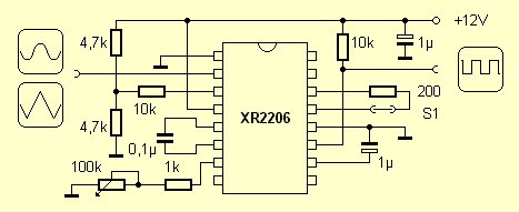 Das preiswerte IC XR2206 ermöglicht einen sehr einfachen Funktionsgenerator