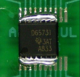 wird. Ein vierfacher DA-Wandler DAC6573 im 16-poligen TSSOP-Gehäuse