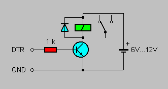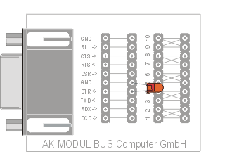 eine LED zwischen dem Ausgang DTR und Masse (GND).