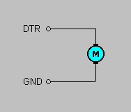 Motor zwischen DTR und GND. Der Motor wird dann in beiden Drehrichtungen